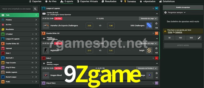 O 9Zgame oferece uma grande seleção de opções de apostas em e-sports com probabilidades competitivas
